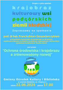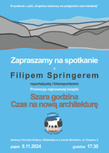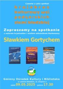 Projekty „Krajobraz kulturowy wsi podgórskich ziemi kłodzkiej” Ochrona środowiska i krajobrazu a zrównoważony rozwój „Szara godzina. Czas na nową architekturę” – spotkanie z Filipem Springerem „Spotkanie ze Sławkiem Gortychem, autorem kryminałów i wielkim miłośnikiem Karkonoszy